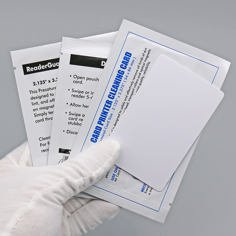 生产的CR80清洁卡采用PVC卡基与异丙醇(IPA)溶液,尺寸为标准CR80(与银行卡尺寸相同),能够广泛适配各种证卡打印机、ATM机、POS机等设备的卡槽,用于清洁维护保养,延长打印机使用寿命,提高打印质量。